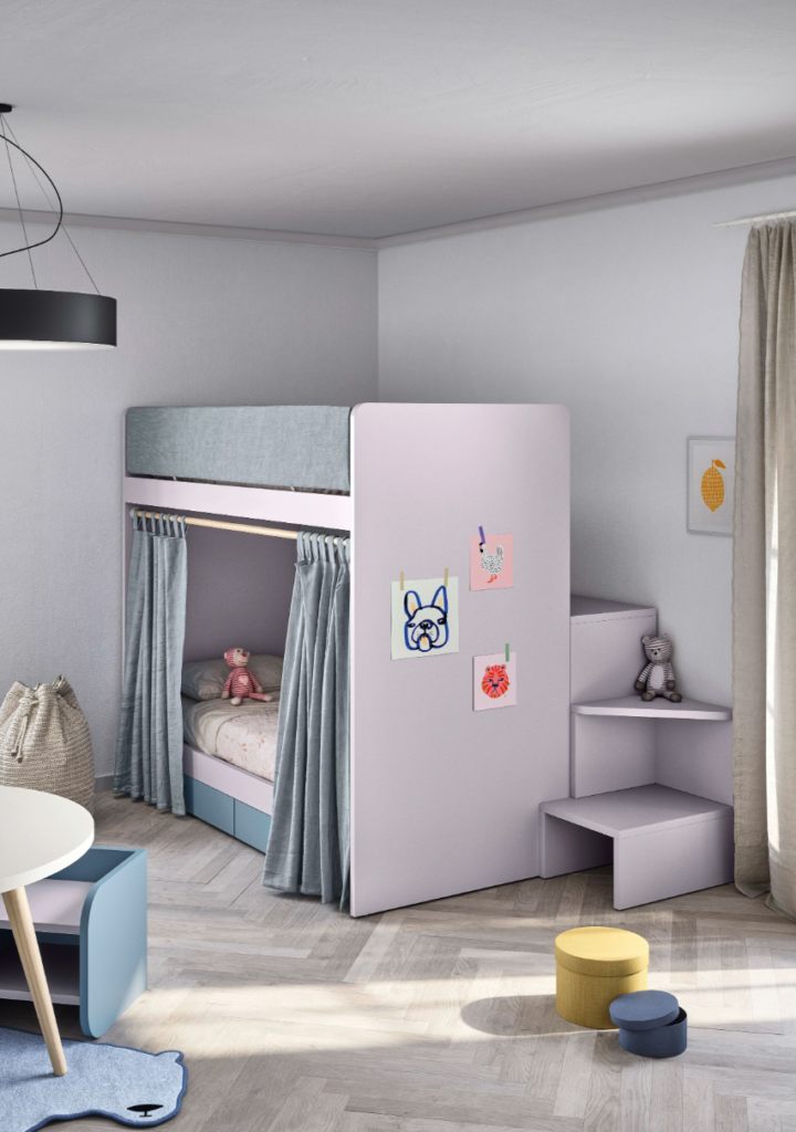 Designed with both safety and style in mind, the Ergo Bunk Bed is ideal for shared or compact bedrooms. It includes integrated steps for safe access, a comfortable lower sleeping area, and optional storage or shelving configurations for maximum functionality.