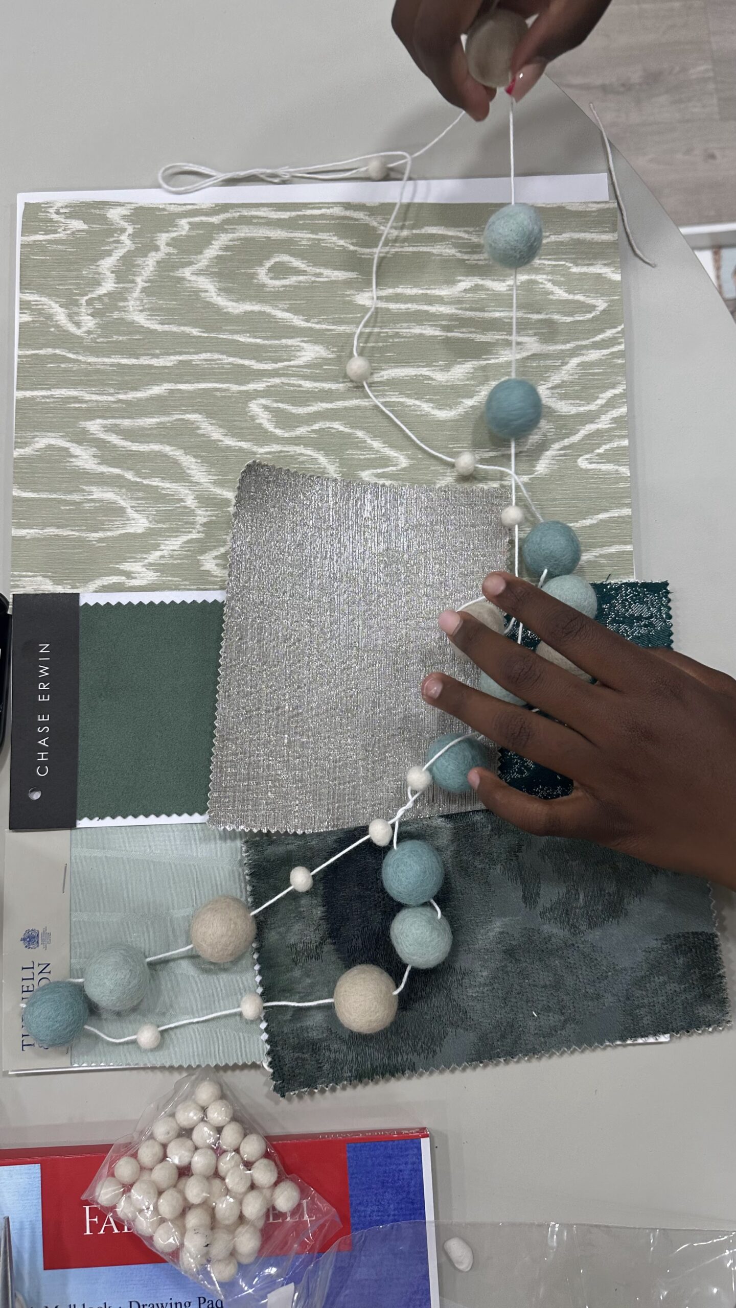 Child making a felt ball garland at MK Kids Interiors